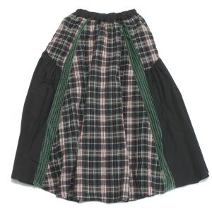 チェックコンビネーションギャザースカート ブラック×グリーン(49)