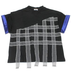 チェックテープTシャツ ブラック×オフホワイト(54)
